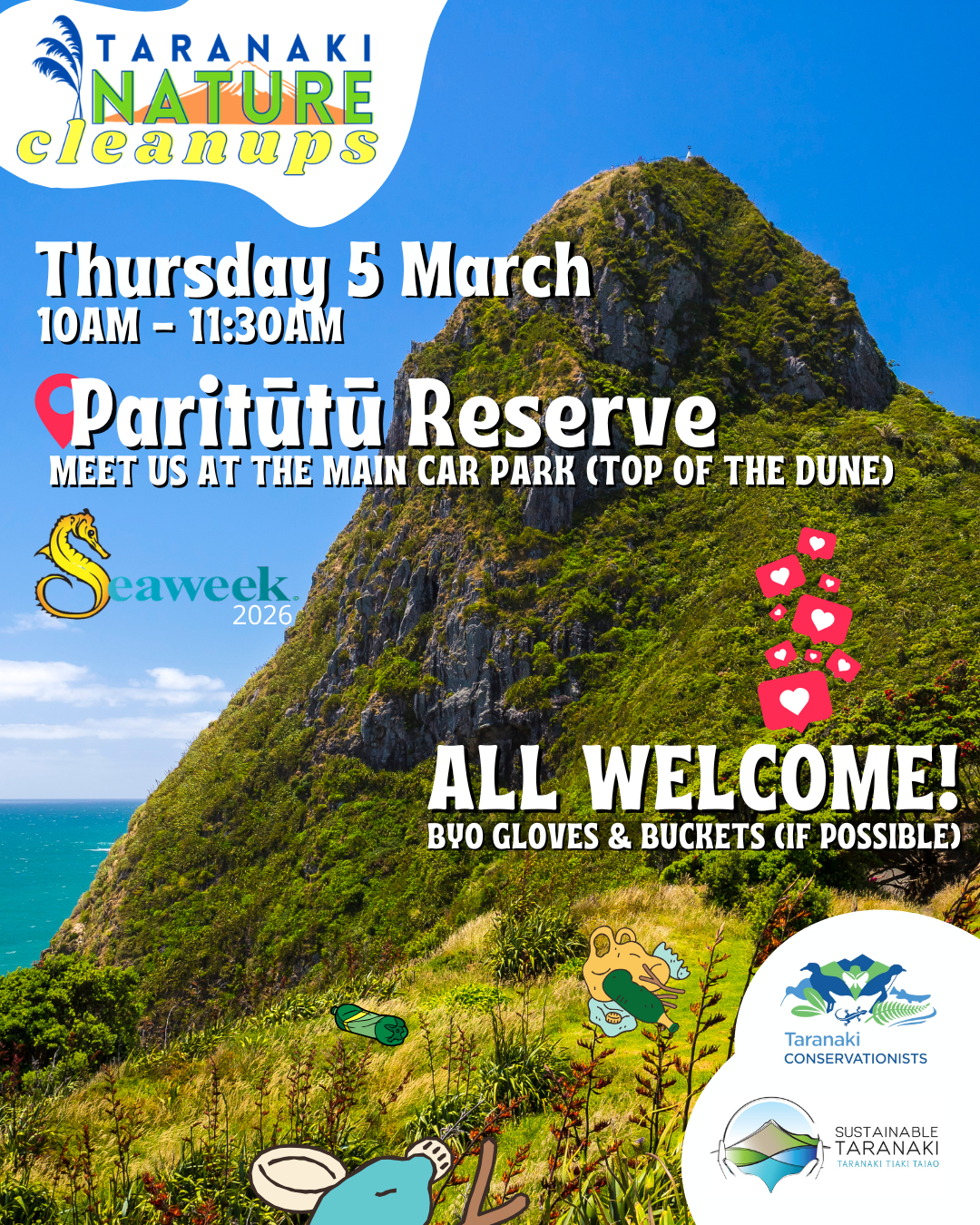 ALL WELCOME! Come and help us clean the beautiful Paritūtū Reserve (Centennial Park), Back Beach and surroundings!