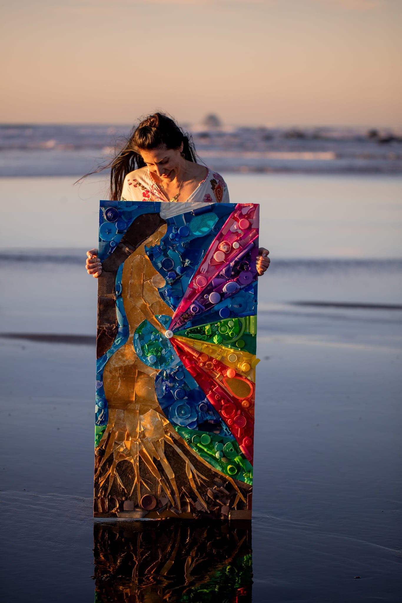 Meet Lorella, a local artist and educator hosting a large-scale exhibition of beach plastic artworks in New Plymouth for Plastic-Free July.