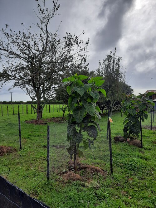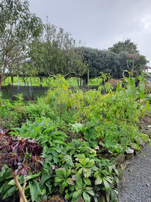 The existing feijoa hedge gets fed via sheep manure and lawn clippings. An old espalier apple is next to that with an old Omega plum in front of them both. I have added tamarillos, fig, tangelo, grapefruit, lime and mandarins, Wilson and Luisa plums, plumcot, sweet johnny apples, peaches, strawberries, raspberries, grapes and six avocados. All the fruit trees are bordered with Russian comfrey.