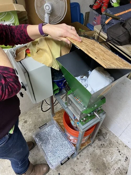 There, I got the idea to start recycling plastic, small scale in my garage. I started collecting used plastic from my community, without really knowing where this was going to lead. I found a plastic shredding machine for sale in NZ, and started shredding heaps of used plastic, after I cleaned and sorted it.