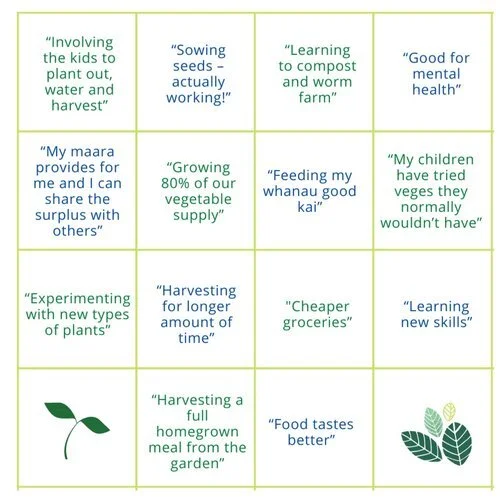 It’s important to note that it hasn’t all been easy, as most people face challenges in their growing kai - journeys. Some of the most common barriers were general lack of time, not knowing where to start, needing more resources (especially around pest management), limited space and a drop in motivation once gardening became difficult.