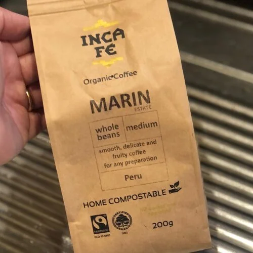 The entire range of IncaFé coffee bags, 200g or 1kg of any blend, is home compostable