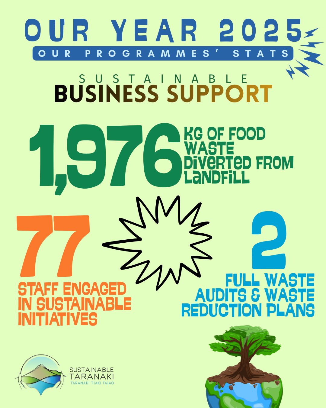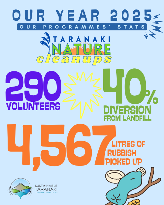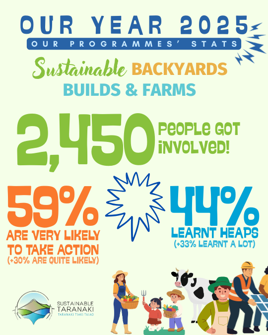 2025 was a big year for our team and our programmes! Here are some (big) numbers about our mahi in Taranaki. You’ll find below more stats about our different programmes. Get in touch if you’d like to know more!