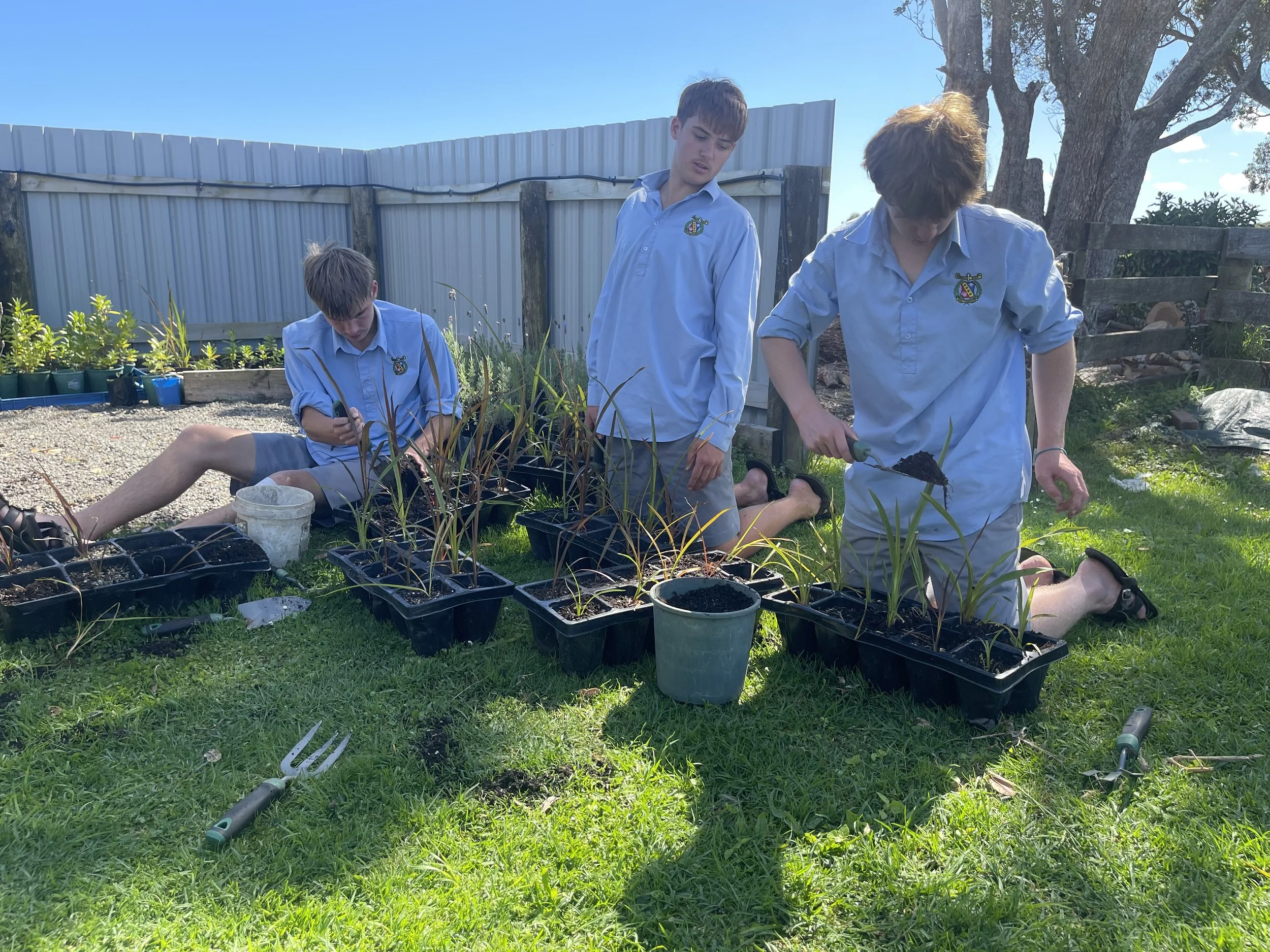 We are passionate about providing education in sustainability for the students at FDMC. During lesson time our students eco-source native seeds, propagate plants, plant, water, feed, weed, prune, compost and do pest control. They have prepared raised garden beds, set up hydroponic systems, and helped build shade houses and berry enclosures. The students also care for our beehives, free-range chooks and farm cattle. Our fruit and vege harvest is all donated to the local food bank, and we donate many of our kowhai plants to the local hospice shops. Each year, our senior students spend a day planting 1000 native trees for local farmers. All students involved in our programmes are involved in one way or another in the nursery. The tasks vary all year round and provide valuable life skills for young men as well as provide a great product at a great price to our community.