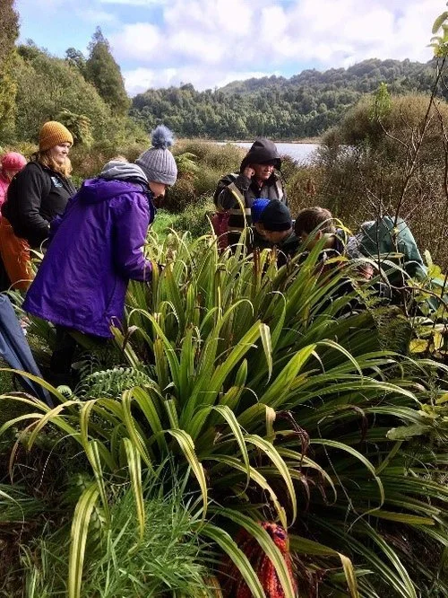 Picture: Looking in Kiekie clumps – were tamariki sight the protected species, Taranaki Gold Striped Gecko.